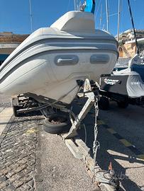 Splendido sacs con tubolari in ottimo stato senza Microperdite o spellature,spiaggette in vetroresina con teak vero. Motore 40/60 mercuri che spinge il gommone a più di 24 nodi tendalino a 3 archi acciaio inox, doccetta e pompe di sentina Carrello omologato e revisionato 1000 kg plini e gigliotti