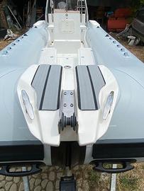 Vendo per inutilizzo gommone Sacs MT.6,00 del 2000 tubolari rifatti Giugno 2023. Accessoriato come segue: ancora acciaio 10 mt. di catena acciaio anno 2023 serbatoio acque per doccetta 2022 doccetta nuova 2023 serbatoi benzina modello sogliola lt. 70 2022 luci di via e impianto elettrico rifatto 2022 roll-bar acciaio inox spiaggette vetro resina poppa 2023 teak sintetico 2023 pompa sentina nuova 2023 pompa doccetta nuova 2023 consolle con strumenti, tavolo abbattibile , bussola, Garmin con ecoscandaglio, accendi sigaro 12 volt.usb 12 volt, salvagenti e dotazioni di sicurezza nuovi 2022 faretti a led su roll-bar nuovi 2022 viene fornito con carrello nuovo 2022 satellite lunghezza mt. 6,490 larghezza mt.2,00 portata 730 kg.Senza motore, prezzo trattabile