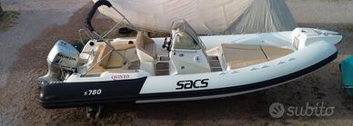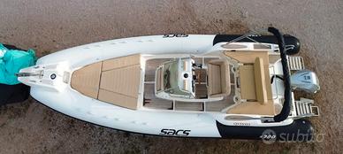 Sacs S 780 Elegance + Honda 225 CV, ca. 275h Disponibilità immediata! Il Sacs S 780 Elegance è un gommone versatile ed elegante, ideale per giornate in mare all'insegna del comfort e della sicurezza. Grazie a motore potente e affidabile e a migliorie recenti, offre un'esperienza di navigazione piacevole e senza sorprese. Dati tecnici principali: Cantiere: Sacs Srl Modello: S 780 Elegance Anno: 2009 Lunghezza: 7,80 m - Larghezza: 3,06 m Motorizzazione: Honda BF225 4T Benzina (ca. 275 ore) Trasmissione: Fuoribordo Alimentazione: Benzina Serbatoi: Carburante inox 300 L (nuovo 2022) Portata persone: 8 con dotazioni complete entro 6 miglia Colori: scafo bianco, tubolari bianco/nero Accessori e dotazioni installate: Verricello elettrico Coperta in teak Tendalino inox Tavolo a scomparsa in pozzetto Plancette poppiere maggiorate con scaletta ad archetto Doccia esterna Computer Raymarine IT70S con trasduttore Stereo Boss Marine con 4 casse Telo copertura Cuscineria completa Manutenzioni e migliorie recenti: Oltre €10.000 investiti negli ultimi anni Serbatoio inox nuovo 2022 Elettronica Raymarine 2022 Stereo Boss Marine 2022 Plancette maggiorate e lavori extra Visibile su appuntamento Prezzo trattabile + nostre commissioni 5%+IVA