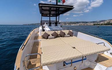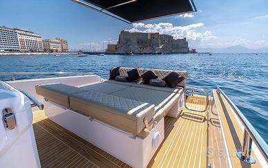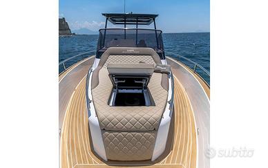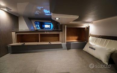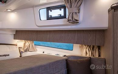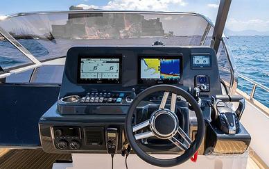 Elica di Prua, GPS 12" Garmin, Impianto acqua calda + boiler, Impianto 220V+Caricabatteria, Fornello a Gas, Frigo in pozzetto, Pulpito in acciaio inox, Flaps Zip Wake, Impianto Stereo Fusion, WC + Impianto Acque nere, Box Doccia separato, Apertura gavone pozzetto elettrica, Cabina di poppa