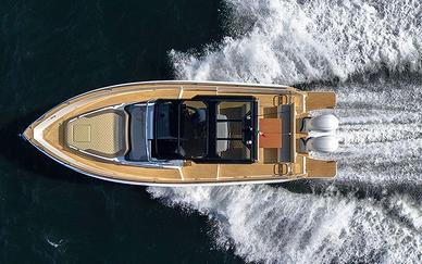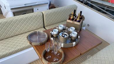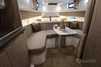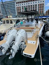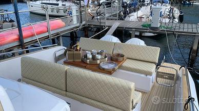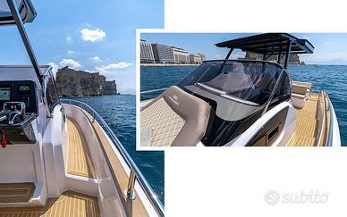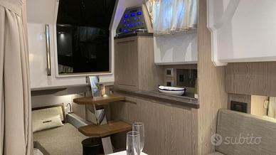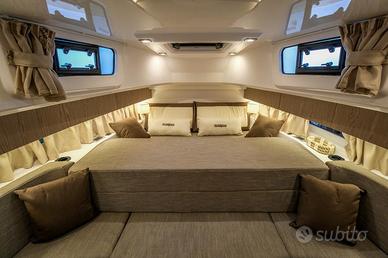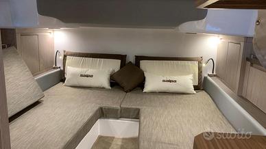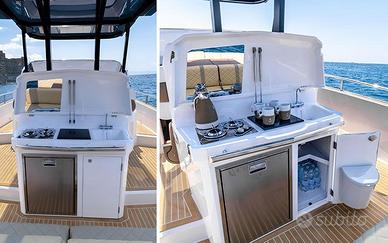 Elica di Prua, GPS 12" Garmin, Impianto acqua calda + boiler, Impianto 220V+Caricabatteria, Fornello a Gas, Frigo in pozzetto, Pulpito in acciaio inox, Flaps Zip Wake, Impianto Stereo Fusion, WC + Impianto Acque nere, Box Doccia separato, Apertura gavone pozzetto elettrica, Cabina di poppa