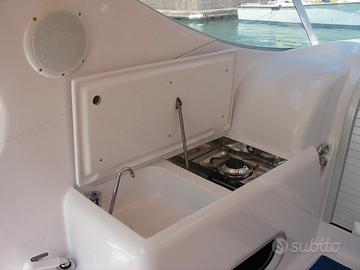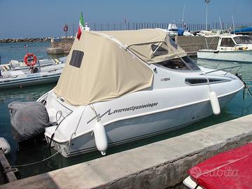 La barca durante l'inverno è sempre stata a secco e al coperto , motore Suzuki 140 CV , carrello LBN 1220 da 1500 Kg , doppia elica ( 18" e 20" ) Tendalino da campeggio nuovo , tutte le dotazioni di bordo compreso passerella e materiali per campeggio , come si vede dalla foto , l'ho fatta fare in cantiere nel 2012 , attacco elettrico a banchina con carica batterie e molto altro , che posso spiegare a veramente interessati , al momento la barca è in porto e visionabile a Rosignano Solvay , la trattativa verrà effettuata dopo presa visione ed eventuale prova .