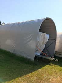 per quindici giorni l'anno, tagliandata ogni anno, lavata e asciugata ogni volta e riposta a secco sempre al coperto, su proprio carrello stradale nuovo, "Cresci" biasse, su 4 colonnine.