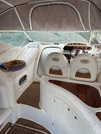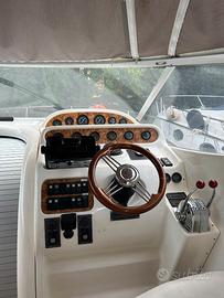Completa di smart TV (in cabina armatoriale e attacchi anche nel pozzetto), impianto stereo marino, doppio frigorifero (nel quadrato e nel pozzetto), Garmin (GPS, bussola, profondimetro, etc.).