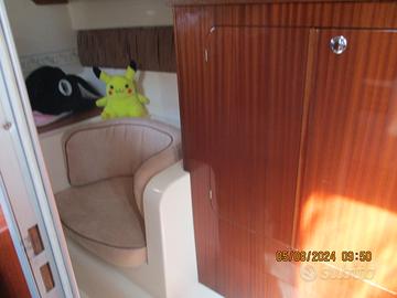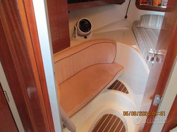 Laver 31.5, anno 1999, lf.t. 9,06, natante, 2 x 170 Volvo efb turbodiesel, motori sbarcati e revisionati completamente anno 2017, lavori con fattura, ore moto 500 da lavori fatti, vel. crociera 20/ max 24 nodi, 3 batterie, posti letto 4 + 2, cabine 2, bagno con wc, docce 1 + 1, cucina 2 fuochi, frigo, boiler, gruette poppa, plancetta, passarella, salpancore elettrico, tendone e tendalino, vhf, eco, stereo, tv, motori sbarcati e revisionati 2019.
