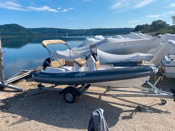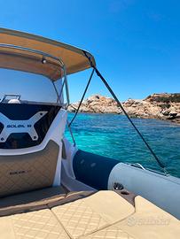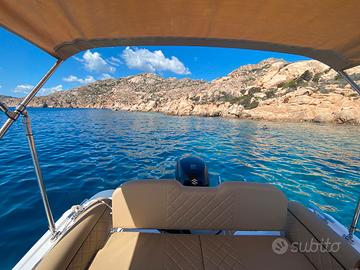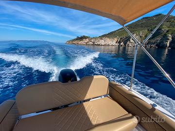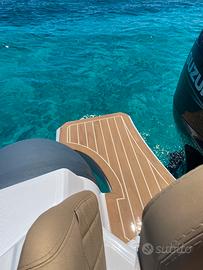 Gommone con tappezzeria Macadamia , doccia, kit prendisole , tendalino archi acciaio, serbatoio 90l, teak sintentico completo, tavolino, telo su misura, Garmin 723xsv, trasduttore, cartine, timoneria idraulica, motore Suzuki DF90a, MFG 3,5, cavi alto scorrimento, 2 batterie Exide 77Ah con stacco in cassetta e cavo ripartitore carica, cablaggio e installazione, tubolari orca Fabric Impression grey, 2 salvagenti auto gonfiabili Skipper 150N, 4 salvagenti 150N, VHF Cobra MR HH500 FLT, Gonfiatore a batteria GE 10-b Soprega, altri accessori: ancora e catena, kit sicurezza 6m, salvagente anulare e cimetta. Margini trattabili sul prezzo. Disponibile anche Rimorchio Trailers 00930 Waterproof per ulteriori ?1500.
