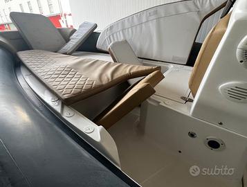 Gommone molto spazioso ed elegante. Capace di unire prestazioni ottimali unitamente ad un comfort di bordo non usuale per queste misure; prua molto larga ,materiali di pregio, doppio prendisole, caratterizzano fin da subito il gommone. L'unità proposta è motorizzata con un eccellente Mercury da 115 cv ( motore e gommone 2023 ) che permette una navigazione in sicurezza con ottime prestazioni e consumi ridotti , anche a pieno carico. Tubolari in Hyplon. Completano l'allestimento tutte le cuscinerie, l'ampio tendalino a doppio arco, le plancette allungate di poppa , l'imbarco carburante a murata e l'impianto doccia . In capannone visibile con breve preavviso .