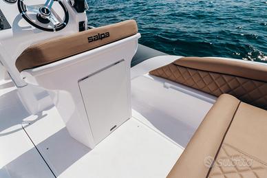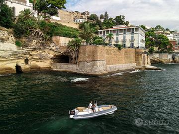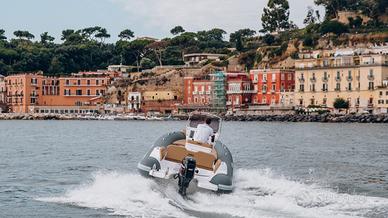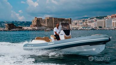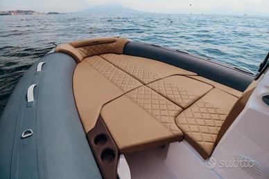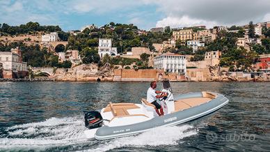Gommone molto spazioso ed elegante. E' capace di unire prestazioni ottimali a comfort della vita di bordo grazie alla prua molto larga e alla predisposizione prendisole di poppa che permette di avere due grandi prendisole.