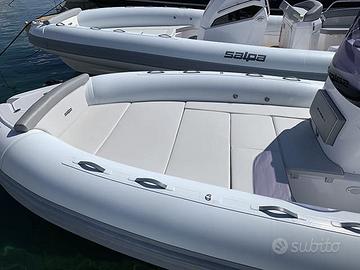 Bellissimo gommone Salpa Soleil 20 - IN PACKAGE CON MOTORE Honda BF40E, NUOVO PRONTA CONSEGNA! PREZZO 34.400 euro IVA INCLUSA! Il prezzo inserzionato è riferito al gommone Salpa Soleil in package con motore Honda BF40E. Caratteristiche tecniche: Lunghezza f.t 6.40 mt Larghezza f.t. 2.54 mt Portata Persone : 9 Diametro tubolari max : 58 cm Materiale tubolari: Hypalon Carena: Single step Categoria CE : C Peso a vuoto kg 650 (Senza Motore) Motorizzazione minima: 40/60 cv Motorizzazione massima: 140 cv Deadrise medio : 26° Accessori standard: 3 Ganci traino e ormeggio, 4 bitte in acciaio inox, bussola, consolle guida sport edition, cuscineria completa a cellule chiuse, gavone ancora con portello e rullo, gavone sotto il divano di poppa, gavoni sotto prendisole di prua, impianto elettrico completo, parabrezza con girocassero inox, plancette poppa VTR, pompa di sentina elettrica automatica, quadretto elettrico al cruscotto, scaletta mare inox a scomparsa, tromba elettrica, tubolari colore bianco con bottazzo grigio, luci di navigazione, vano porta-batteria, stacca-batteria, volante Salpa a 3 razze e gonfiatore manuale. Prezzo package euro 34.400 iva compresa con motore Honda BF40E. Package con motore: - Gommone Salpa Soleil 20 + motore Honda BF40E: 28.200 euro + iva - Gommone Salpa Soleil 20 + motore Mercury 40 PRO: 29.200 euro + iva - Gommone Salpa Soleil 20 + motore Yamaha 40 Supreme: 30.200 euro + iva - Gommone Salpa Soleil 20 + motore Honda BF100: 32.600 euro + iva - Gommone Salpa Soleil 20 + motore Honda BF115: 33.600 euro + iva - Gommone Salpa Soleil 20 + motore Honda BF135: 34.900 euro + iva - Gommone Salpa Soleil 20 + motore Honda BF150: 36.600 euro + iva Motorizzabile con motore Honda o Mercury. Possibilità di finanziamento motore a tasso agevolato in 24 rate! Disponibile anche altri modelli della gamma SALPA!