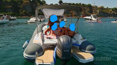 Salpa soleil 20 varato maggio 2024 Motore Yamaha 115 con circa 120 ore moto Timoneria idraulica Teak sintetico su plancette e musone di prua Salpa ancora elettrico con 30 metri di catena e tasti addizionali comando verricello su musone di prua Serbatoio carburante maggiorato 120 litri Tendalino tre archi Plancette maggiorate Doccetta di poppa con serbatoio 30 litri Stereo Hertz HMR 20 con due casse fusion Garmin echomap UHD72 CV ecoplotter 7'' con trasduttore GT20 TM Lavandino con rubinetto sotto seduta Tavolino a ribalta Ombreggianti laterali e di prua Telo copertura totale originale Salpa Il gommone è immacolato senza segni di usura sempre lavato e coperto integralmente dopo ogni uscita, mai preso sole al di fuori delle uscite