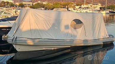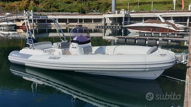 Vendo gommone Salpa Soleil 23 con motore Mercury V6 200 cv tutto in condizioni perfette e tenuto in maniera maniacale, usato solo 20 giorni d’estate in ferie e poi sempre rimessato in box coperto. Carena, parti in vetroresina, tubolari e motore in condizioni perfette. Possibilità di acquistare anche carrello Pima gemellato da 2000 kg. Dotazioni: - Motore Mercury V6 FourStroke 200 cv con manetta elettronica e timoneria idraulica. - Roll bar in acciaio inox abbatibile con tendalino. - Navigatore Garmin touch screen. - Impianto doppia batteria con switch per passaggio da una all’altra. - Carica batterie da banchina interno al gavone. - Luci per la navigazione notturna. - Presa corrente per attacco in banchina. - Salpa ancora elettrico con musone inox. - Ancora con catena. - Bussola ad incasso. - Faro di profondità. - Impianto doccia completo. - Impianto lavello completo sotto seduta di guida. - Presa 12 volt nel gavone di prua. - Frigorifero Mobicool con compressore. - Dinette di poppa con tavolo. - Kit trasformazione dinette di poppa in ampio prendisole. - Luci a LED sul roll-bar per l’illuminazione notturna del pozzetto. - Ampiamente prendisole a prua. - Tendalino parasole di poppa con prolunga di prua per copertura totale del gommone. - Telo copri consolle e seduta guida. - Telo copri motore. - Plancette di poppa con scaletta a scomparsa. - Golfari appositi per aggancio sospendite di sollevamento. - Sospendite per il sollevamento. - Presa per attacco gonfiatore elettrico. - Gonfiatore elettrico Turbo Max 1000 litri al minuto per gonfiare e sgonfiare i tubolari. - Tenda per campeggio nautico, copertura totale a tutta altezza con 4 aperture finestrate d’uscita: una a prua, una a poppa e due laterali con oscuranti e zanzariere. Vendo per passaggio a gommone di dimensioni superiori.