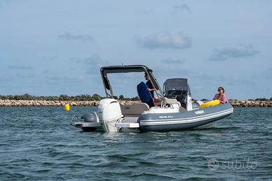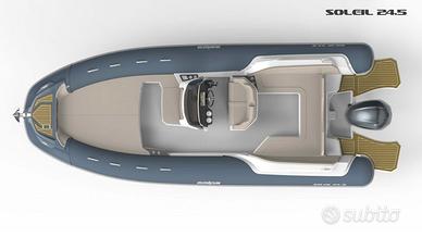 Il nono modello della gamma Soleil: nuova carena, nuova coperta, nuovo design. Pensato per chi cerca un'ottima navigabilità senza dover però rinunciare alla comodità. Caratteristiche: Lunghezza: Fuori tutto 7,85 mt Omologazione 7,09 mt Tubolare: Diametro 60 cm Materiale Hypalon Neoprene 1670 - ORCA Portata persone: 14 Motorizzazione: Min 175 Hp Max 350 Hp Consigliata 200/225 Hp Larghezza: Massima 2,94 mt Tubi sgonfi 2,46 mt Peso a vuoto: 1.100 kg (senza motore) Capacità serbatoi: Acqua 50 lt Carburante 280 lt Categoria omologazione: B Dotazioni standard incluse nel prezzo: 3 Golfari in acciaio inox, 4 bitte in acciaio inox, serbatoio carburante da 280 L, aspirazione GAS, serbatoio acqua 70 L, parabrezza con girocassero inox, cuscineria completa a cellule chiuse, ganci per sollevamento, luci di navigazione, gavone sotto consolle, gavone sotto sedile pilota, impianto elettrico completo 12 V, tromba, mobile cucina, plancetta di poppa, pompa di sentina automatica, scaletta telescopica, divano di poppa con schienale a ribalta, sediolino davanti consolle guida, pompa timoneria idraulica (non incluso cilindro motore), volante, cassetta portabatteria, tubolari in Orca 866 military e gonfiatore manuale. Package con motore: - Gommone Salpa Soleil 24.5 + motore Honda BF200: 59.900 euro + iva - Gommone Salpa Soleil 24.5 + motore Honda BF250: 60.900 euro + iva - Gommone Salpa Soleil 24.5 + motore Honda BF350: 68.900 euro + iva Disponibile tutta la gamma Salpa presso il nostro cantiere. Package con motori Honda o Mercury. Motore Honda finanziabile a TASSO ZERO in 24 rate! Contattaci per visitare il nostro showroom Salpa. Disponibili sempre diversi gommoni Salpa Soleil in visione con vari allestimenti e diverse colorazioni. www.ferrarionautica.it Ferrario Nautica a Dormelletto (NO), concessionario Salpa per Lago Maggiore, Lombardia e Piemonte.