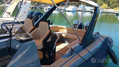Verricello Elettrico con ancora e catena Mobile cucina con lavello Nr.2 Pompa di sentina automatiche Porta Cabina scorrevole Plancette poppa VTR - Doccia a poppa Scaletta Mare telescopica con maniglia Serbatoio carburante ed acqua GPS 9" Garmin - Impianto Stereo Fusion Teak sintetico su plancette di poppa Timoneria idraulica (solo pompa e tubazioni) Armadio e mobiletto in R.S. con top in Groowe Pavimento cabina in Laminato teak filo acero Cuscini sotto prua - Illuminazione alogena Oblò nr.2 - Osteriggio passo d'uomo Locale toilette con Lavello e doccetta Wc Marino Elettrico + Impianto Acque Nere