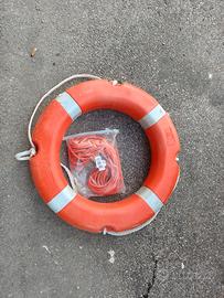 2 salvagente adulti + 1 salvagente bambino+attrezzo per tenere in moto il motore fuori dall' acqua+articoli obbligatori per imbarcazioni+ scaletta+asta+pompa a mano per svuotare acqua interna nuova+ciambella salvagente con corda