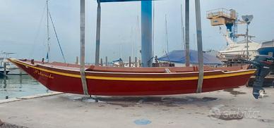 Cantiere Dei Rossi Giudecca, fasciame e compensato. Anno 2019 7.60x2.00 Motore Yamaha mod. F 9.9 HWHL NUOVO LUCI, panchina, 3 posizioni remi, forcole, dotazioni complete, parabordi, tielmo estivo e invernale, carello portamotore. Barca costruita x famoso regatante, mantenuta perfettamente con rimessaggio invernale. Visibile a terra al lido di Venezia.