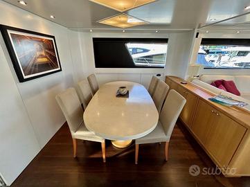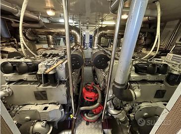Allarme motore, Allarme sentina, Autoclave, Camminamenti laterali in teak, Elica di poppa - stern thruster, Elica di prua - bow thruster, Flap idraulici, Gruette per tender su fly, Impianto antincendio, Impianto Aria Compressa, Luci di cortesia, Luci subacquee, Passerella, Pompa di sentina automatica, Ponte in teak, Porta laterale, Pozzetto Teak, Salpa Ancore Idraulico, Tender, Winch Idraulico.
