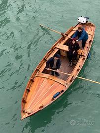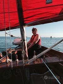 Vendo sanpierota di 7m costruita negli anni ’60 del cantiere Schiavon. Con fondo resinato, è armata al terzo con un fuoribordo Yamaha 6 cavalli e 2 forcole e 2 remi. La barca è ampia, stabile, e adatta a gite in laguna, a remo o a motore, anche a non-velisti, con un ombrellone da barca ed una scaletta pieghevole per fare bagni. Sono Inclusi: 2 vele maestre; 1 fiocco; fuoribordo Yamaha 6 cavalli; 2 remi e 2 forcole (Piero Dri); manovre tutte nuove (Paolo Rusca); tiemo (Marta Signorelli); ancora; 2 salvagenti, anello di sicurezza, estintore; 3 serbatoi; luci di navigazione; parabordi e cime varie; ombrellone americano per barca; scaletta pieghevole. Visibile vicino a Rio Marin Prezzo 8500.00 trattabile