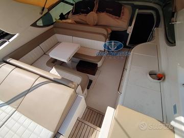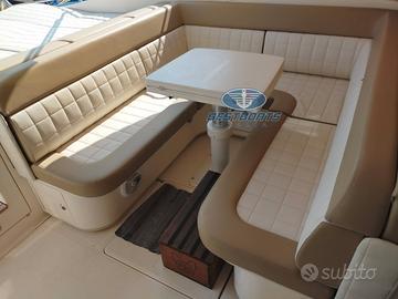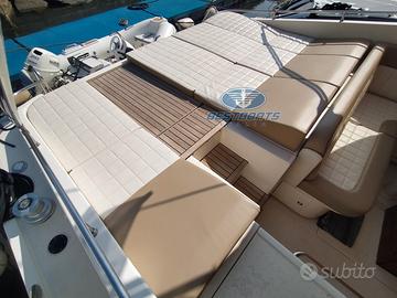 All'esterno, ampi prendisole a prua e poppa, divano a C e cucina attrezzata rendono ogni momento a bordo un piacere. La consolle di comando laterale offre un'ottima visibilità le manovre semplici e massima sicurezza in navigazione.