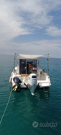 Accessori: plancette di poppa, supporto ausiliario, fb yamaha 8 cv hi trust con comandi e timoneria esterna ( valore 3500), vasca del vivo, doccetta, salpa ancora elettrico, impianto fotovoltaico, inverter con corrente 220v, prese elettriche per canne da pesca, vari portacanne inox, fornello gas inox, motore elettrico di prua (minn-kota 36 v gambo extra lungo con batteria litio 100 ah trolley valore complessivo 6.000), presa acqua di mare, 3 batterie di cui 1 collegata al fotovoltaico dedicata a servizi o mulinelli elettrici, strumentazione ( lowrance hds 9 pro e humminbird helix 9 collegato con min-kota più 4 trasduttori di poppa valore strumentazione 4000 euro), tendalino smontabile, dotazioni di bordo e altri accessori per la pesca. Se non interessa il minn-kota o qualche altro accessorio posso valutare di toglierlo dalla vendita.