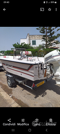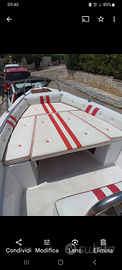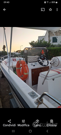 Barca motorizzata johnson 90 cv 2t completa di carrello , cuscineria scaletta di poppa, sentina, ecoscandaglio,bussola, tendalino , interno finto teak.pronta a navigare.ottimo stato generale.visibile specchiolla( carovigno)valuto permuta con gommone