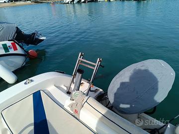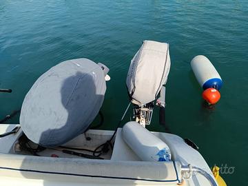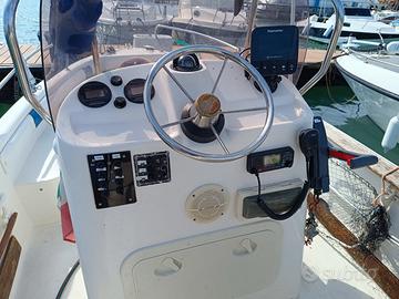 super accessoriata: Motore Principale Yamaha 40/60 (SENZA PATENTE) ad iniezione elettronica con strumentazione originale Yamaha, funzione troll per la traina, indicazione del consumo precisa ecc., consumi irrisori 1,4 miglia marine con un litro di carburante a 20 nodi , serbatoio carburante 55 litri, motore ausiliario Honda 5 cavalli 4 tempi, usato pochissimo, con serbatoio separato da 12 litri. barra di accoppiamento dei due motori in acciaio per manovrare dal volante principale.