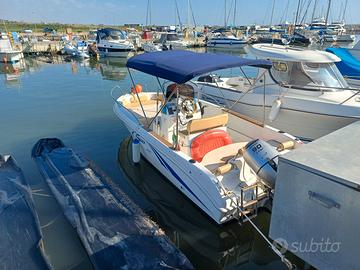 Rimetto in vendita, fino al 30/03/2026, barca Saver 550 anno2009 omologazione C.E. con fuoribordo Honda 90 CV anno 2009 con 310 ore di navigazione, sempre tagliandato e pronto per la nuova stagione, La barca è completa di strumentazione originale Honda (contagiri, contaore,contamiglie,livello benzina, posizione trim, orologio,checkp batteria), bussola, compreso nell'offerta tedalino inox, cuscineria bicolore in ottimo stato con prendisole allungato, copertura parziale su misura, serbatoio benzina 90 l. con filtro , serbatoio acqua 40 l., doccetta a poppa, lavandino sotto sedile di guida, scaletta bagno , pompa di sentina, doppia batteria con selettore e stacca batteria totale, ancora su musone di prua con cima e catena, quadro elettrico con interruttori, portacanne, impianto VHF omologato Horizon Eclipse mod. GX1300E, eco gps Lowrance Elite-5,impianto luci a norma per navigazione costiera, idroguida appena installato, il tutto offerto ad €.16.500,00## eventuale carrello stradale Ellebi anno 2019 con revisione e targa XA, portata lorda Kg.1000## con aggiunta di €.1.950,00## . il tutto visibile a Pedaso (FM).