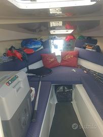 Tendalino con chiusura totale, cuscineria Interna ed esterna in ottimo stato, pilota automatico 2024 Nac1 , timoneria idraulica 2024 Sea First 150, trasformatore SBC300NRG 30 ha. Ecoscandaglio lowrance elite fs9 con sonda passante da 600, presa a mare per acqua salata, 2 prese per mulinelli elettrici, frigo portatile in cabina , stereo con casse bluetooth, whf, doccetta esterna con serbatoio da 50 litri. N. 6 reggicanne fissi + 4 da riposo. Antivegetativa e rimessaggio motore effettuati a febbraio 2025. Scadenza posto barca 31/12/25