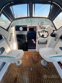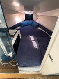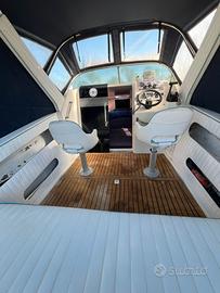Interni ben tenuti, copertura completa, pavimento in teak, strumentazione Garmin, doppia seduta e cabina con cuccetta matrimoniale.