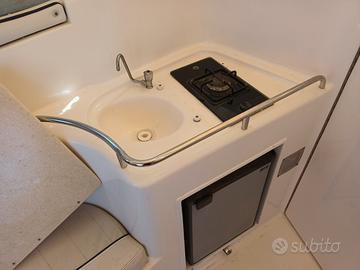 Motore 115 4 tempi Yamaha Anno 2000+ 15 Cavalli 4 tempi Yamaha anno 2008 di scorta, passerella in teak, Cartografico Geonav 4C, salpa ancora elettrico, due batterie, impianto stereo con CD, ecoscandaglio Lowrance + Multifunzione Axiom Navionics , timoneria idraulica impianto corrente e caricabatterie a 220 Volt, 2 Batterie cambiate nel 2024 e cucina a gas, copertura camper completa, già effettuata a Luglio 2024 carena e manutenzione motori. Barca unico proprietario acquistata fine 2006