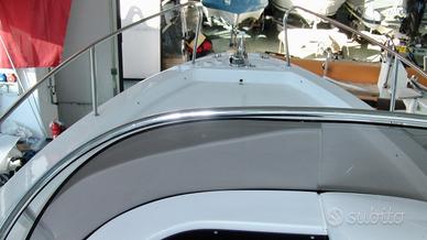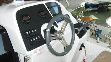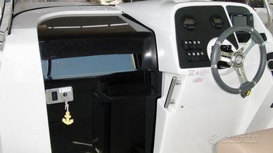 Cuscineria completa, Tendalino parasole, telo copriconsolle, Telo copribarca per stivaggio, Eco GPS, Corrimano in acciaio inox , n. 4 bitte, Volante con timoneria monocavo , Pannello elettrico con interruttori e fusibili separati , Musone di prua, Parabrezza , n. 2 tasche laterali portaoggetti , Luci di navigazione, Serbatoio carburante da lt. 120 ca con indicatore ed estrattore gas, Bussola, Tromba, Porta scorrevole in plexiglass, Staccabatterie, Pompa di sentina, Serbatoio acqua da lt. 50 ca con impianto doccia, Divano pozzetto a 'L' , Sedile guida a due posizioni abbattibile con gavone sottostante, Prolunga prendisole di poppa con kit tavolo.