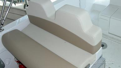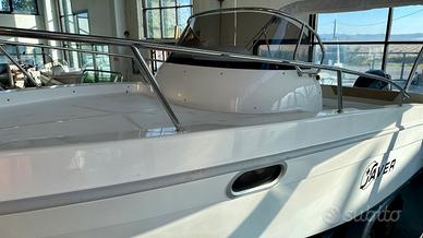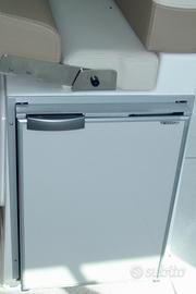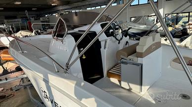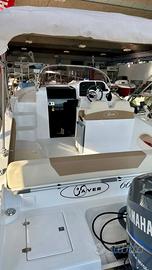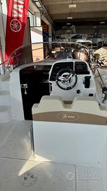 Per gli amanti del sole, come detto, c'è la possibilità di un doppio solarium: fisso a prua e componibile a poppa sfruttando la dinette ed il tavolo. La cabina offre un letto matrimoniale, oblò, dotata di WC elettrico. Motorizzata con un potente Yamaha 150 cavalli, per ottenere ottime prestazioni e consumi contenuti, offre un'autonomia di serie di ben 120 litri garantita dal serbatoio presente sotto al piano di calpestio.