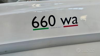 Disponibile per utilizzo immediato stupenda imbarcazione Saver 660 Walk Around motorizzata con motore Yamaha 150 HP Questa barca ha solo 20 ore, il proprietario precedente è passato su una imbarcazione più grande. La Saver 660 WA è l'imbarcazione ideale per chi è alla ricerca di uno scafo con caratteristiche walk around, ossia coperta con vivibilità totale diurna, doppio prendisole e cabina per la notte, ma che non vuole perdere la facilità di trasporto su strada.