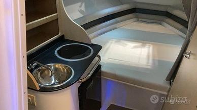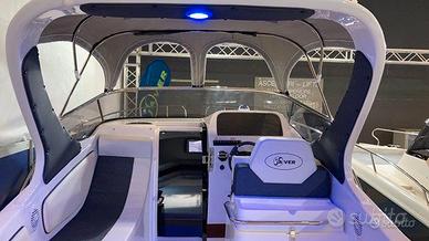 Quasi otto metri di lunghezza che installano esclusivamente motori fuoribordo fino a 350 cavalli complessivi, in soluzione mono o bi-motore. La 750 Cabin nasce per stupire e far innamorare del mare in tutte le sue forme. Linee morbide, dettagli curati, tutto quanto serve a bordo per navigare a medio/largo raggio è stato messo a vostra disposizione, comprese le due aree notte ricavate nella cabina. Corrimano in acciaio inox N. 4 bitte N. 3 anelli alaggio Parabrezza inox Roll bar con luci di navigazione Passo uomo Scaletta bagno Quadro elettrico con interruttori Volante Musone di prua Sedile guida a 2 posizioni abbattibile con gavone sottostante Divano poppa Cuscinerie interne cabine ed esterne Porta scorrevole ingresso cabina in plexiglass Cabina con letto matrimoniale Portaoggetti laterale e specchio Locale toilette separato con WC elettrico, lavello con rubinetto estraibile e impianto acque nere Mobile cucina con lavello completo di rubinetteria e vano portaoggetti N. 3 oblò laterali con tendine parasole N. 4 punti luce Pompa di sentina Tromba Bussola Serbatoio carburante da lt. 270 ca con livello ed estrattore gas Serbatoio acqua da lt. 70 ca Staccabatteria Autoclave con impianto doccia a poppa Cabina poppa con 2 posti letto Prolunga prendisole di poppa Kit tavolo Barracuda Marine Via Nazionale 451 Torre del Greco Per info