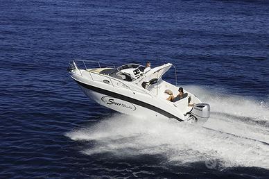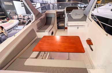 Di giorno la 750 Cabin è una splendida compagna con cui raggiungere piccole baie, isole o semplicemente ancorarsi al largo a prendere il sole, grazie al solarium fisso di prua, alla chaise longue a fianco del pilota ed alla seconda area con cuscini a poppa, ottenibile con la trasformazione del divano a 'L' in un unico piano. In alternativa l'area è dinette con il tavolo in legno, per pranzare in compagnia o semplicemente gustarsi il tramonto sul mare. Veloce anche con un solo motore, la 750 Cabin può con il top di potenza soddisfare anche i palati più esigenti.