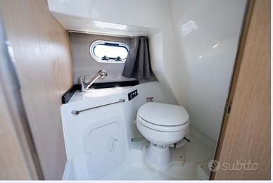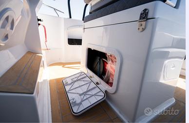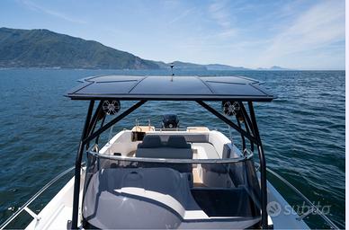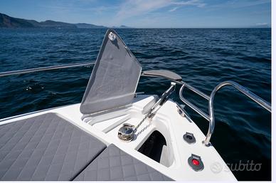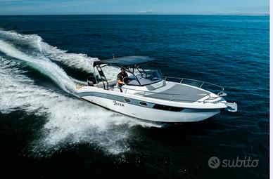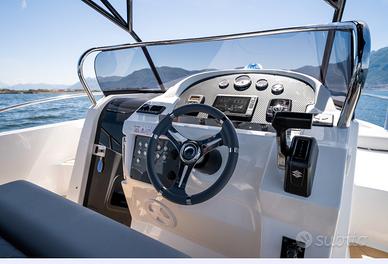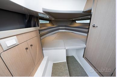 Nuovi elementi stilistici caratterizzano questa barca WalkAround, con linee morbide e avvolgenti. La console di guida è dotata di gradini su entrambi i lati per un facile accesso al prendisole fisso a prua. Ampi gavoni e un ponte ben organizzato garantiscono praticità e comfort.