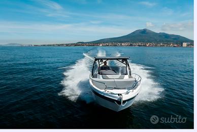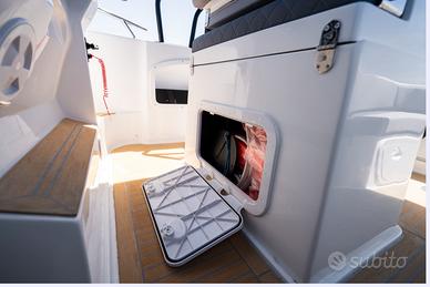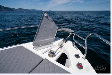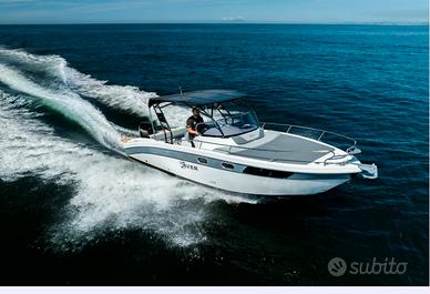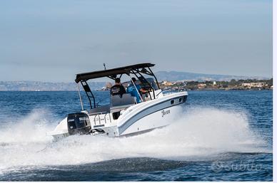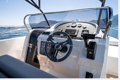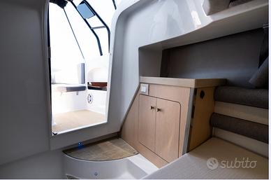 Nuovi elementi stilistici caratterizzano questa barca WalkAround, con linee morbide e avvolgenti. La console di guida è dotata di gradini su entrambi i lati per un facile accesso al prendisole fisso a prua. Ampi gavoni e un ponte ben organizzato garantiscono praticità e comfort.