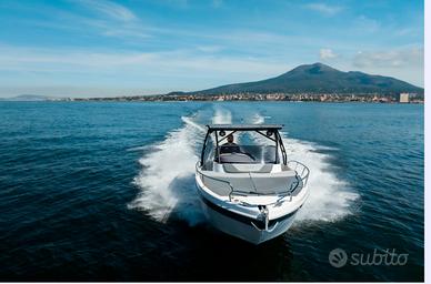 Nuovi elementi stilistici caratterizzano questa barca WalkAround, con linee morbide e avvolgenti. La console di guida è dotata di gradini su entrambi i lati per un facile accesso al prendisole fisso a prua. Ampi gavoni e un ponte ben organizzato garantiscono praticità e comfort.
