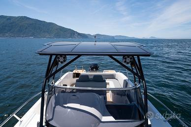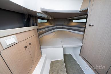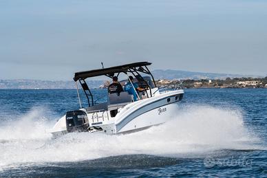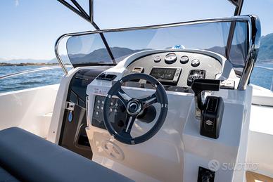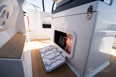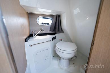 Nuovi elementi stilistici caratterizzano questa barca WalkAround, che presenta linee più morbide e avvolgenti. Ciò è evidente nella console di guida, caratterizzata da gradini su entrambi i lati che conducono al prendisole fisso a prua, così come nei gavoni e sul ponte. Dotazioni di serie Corrimano in acciaio inox N°4 bitte Cusciniera completa interna ed esterna Volante Pannello elettrico con interruttori e fusibili separati Musone di prua Parabrezza N°3 anelli di alaggio N°2 tasche laterali portaoggetti Sedili guida a 2 posizioni abbatibile con gavone sottostante Lavandino sotto sedile di guida Autoclave Doccia Pompa di sentina Tromba Bussola Porta in plexiglass Staccabatterie Serbatoio carburante lt. 250 ca. con indicatore di livello ed estrattore gas Serbatoio acqua lt. 70 ca. Luci di navigazione Scaletta bagno Portello di accesso da poppa Luci di cortesia a led interne ed esterne WC marino elettrico in locale separato e impianto acque nere Lavandino con rubinetto in locale bagno Mobiletto interno cabina in legno Oblò N°3 con tendina Disponibile presso Barracuda Marine Via Nazionale 451 Torre del Greco Per info /