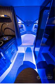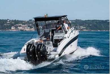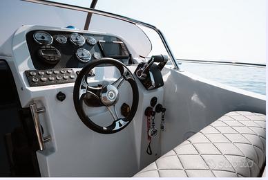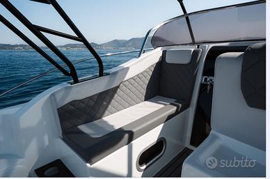 L'ultima imbarcazione della linea Cabin di Saver, l'870 Cabin, è una creazione straordinaria che offre un'esperienza di navigazione incomparabile. Con un'ampia gamma di caratteristiche eccezionali, questa barca è stata progettata per offrire comfort, funzionalità e stile senza compromessi. LUNGHEZZA: 8.63 mt LARGHEZZA: 2.72 mt PESO: 2400 kg MOTORIZZ.: Kw (HP) 2 x 147 PORTATA: 9 DOTAZIONE DI SERIE Cabina di prua con letto matrimoniale N° 2 portaoggetti Specchio Illuminazione N°2 faretti Passouomo con tendina Luci di cortesia Mobili laterali Angolo cucina con piano di lavoro in Corian e sottolavello Lavello con rubinetto Faretti Armadietto Tendina divisoria Pavimento in moquette Scala di accesso con luci di cortesia Frigorifero da 62 litri Fornello a 1 fuoco Bagno con lavabo con mobile, zona doccia estraibile con WC marino elettrico, portaoggetti e specchio Scarico doccia con sistema di svuotamento elettrico Portasciugamani in acciaio Oblò Porta scorrevole ingresso locale wc in plexiglass Cabina di poppa con letto matrimoniale, oblò con tenda, luci di cortesia e faretti illuminazione Cruscotto serigrafato con sistema di interruttori impiantistica Parabrezza in plexiglass Corrimano in acciaio inox Sedile pilota e copilota a 2 posizioni Mobile con lavello e rubinetto Divano a L Tavolo con supporto trasformabile in prendisole Porta scorrevole di accesso alle cabine Doccia estraibile Scaletta da bagno Tasca laterale portaoggetti N. 4 bitte N. 3 golfari Vano portacatena Musone di prua Staccabatteria con deviatore Quadro elettrico completo di interruttori magnetotermici Luci di navigazione Tromba N°1 pompa di sentina Serbatoio acqua dolce lt. 100 ca Serbatoio carburante lt. 350 ca con indicatore di livello Autoclave per servizi idraulici Bussola Serbatoio acque nere Verricello elettrico 700 w