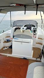 Ultima versione. Barca come nuova. Coppia motori Mercury 150 cv con coprimotori originali. Ore moto 95. Allestimento completo. VHF, radio, gps, boiler acqua calda, teak, tendalino, frigo, cucina e lavello esterni, plancette, spiaggetta maggiorata, timoneria idraulica, doccia interna ed esterna, cabina bagno, cuscineria interna ed esterna come nuova, telo copriconsolle e schienale, striscia laterale colorata. 3/4 posti letto. Tutto 2023.