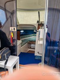motore f.b. Mercury optimax 150 cv 2 tempi con 470 ore di moto anno 2007. Salpa ancora elettrico con comandi in cabina, serbatoio benzina 170 It., serbatoio acqua dolce 70 It. con doccetta, gas, lavandino water GPS ed ecoscandaglio Garmin52dv 2 batterie 100 ah, pompa di sentina, cuscineria interna ed esterna discrete condizioni, chiusura campeggio su specchio di poppa Effettuati lavori 2025 sia di carenamento che manutenzione completa motore Barca in acqua per qualsiasi prova Vendo per troppo poco utilizzo (2025 4 ore)