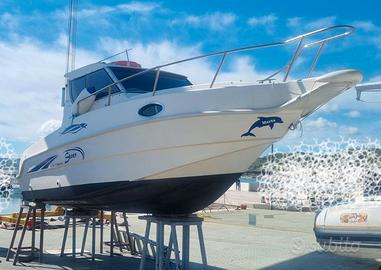 Accessori Gps, Vhf, Radio stereo con antenna marina, Frigo interno, Stufa 12 v, 2 portacanne in murata, 2 portacanne a riposo, Serbatoio carburante 200 l, Serbatoio acqua 80 l, Doccia con autoclave.