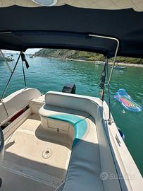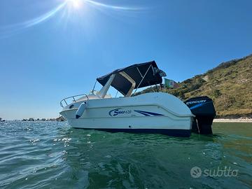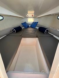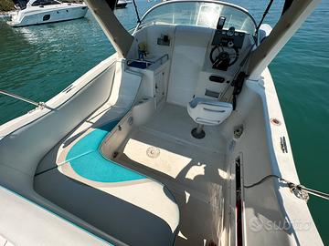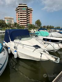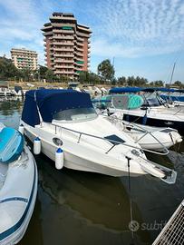 Vendo Saver Manta 620 Cabin completo di motore Mercury Marine due tempi 150 cavalli, cuscineria originale in ottimo stato, tappezzeria interna completamente rinnovata nel 2024, copertura esterna di colore blu, fatta su misura del natante nell'anno 2024, n. 2 batterie Fiamm 100Ah 720A anno 2025, timoneria idraulica, verricello elettrico Quick, Ecoscandaglio GPS Garmin, presa di banchina, presa di corrente in cabina, predisposizione per frigo, serbatoio acqua lt 100, impianto stereo Bluetooth JVC, completo di n. 2 casse Boss Marine 100Watt, serbatoio benzina da 80lt, sostituito nell'anno 2023.