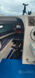 pannello solare da 120 con regolatore di carica per 2 batterie, ecoscandaglio Lowrence hdf5 con trasduttore m. 270 interno allo scafo legge fino a 7-800 metri, ancora alto fondale in acciao inox piu' ancora da sabbia con 500 metri di cima, pallone salpa ancora con anello inox, tendalino parasole a sbalzo dalla cabina, impianto stereo, serbatoio acqua dolce 80 litri con doccetta, raffio inox e mezzo marinaio, dotazioni entro le 12 miglia con zattera da 6 persone, 2 prese per mulinelli elettrici piu' presa 220 volt all'interno, 2 pompe sentina di cui una automatica, cuscineria completa interna ed esterna, 2 batterie da 100 amp., 6 portacanne. Barca in acqua pronta per qualsiasi prova. per info e foto 3207954115 Michele.
