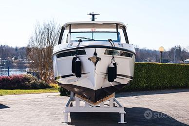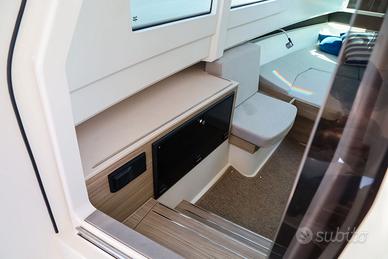 BARCA PARI AL NUOVO - 50h - UFFICIALE ITALIANA - UTILIZZATA SOLO SU LAGO MAGGIORE - IVA ESCLUSA - MOTORI 2x Mercury 300cv IN GARANZIA UFFICIALE CASA MADRE - VISIBILE PRESSO CANTIERE VERBELLA LISANZA (VARESE) - 2x Axiom 12 touch raymarine - Echosounder - Interfaccia saxdor con monitoraggio del sistema - Saxdor connect - controllo e monitoraggio motori - Sistema di acqua dolce - WC elettrico - Serbatoio acque nere - Maceratore - Mastervolt charger 35 A - Sistema di ricarica 220V da banchina - Cavo 220V 15 metri - Quadro elettrico AC/DC in cabina - Correttori assetto manuali - Bow thruster - Salpa ancora a scomparsa - Pacchetto audio: stereo fusion + N°4 casse + comando da remoto - Frigorifero in wetbar - lato six - Calpestio rivestito in soft deck - Doccia a poppa con serbatoio supplementare da 80L - Strumento contacatena in postazione di guida - Tendalino di poppa con pali - Luci di cortesia pozzetto - Layout pozzetto 2- doppio divano scorrevole contrapposto trasformabile in prendisole poppa + tavolòo e coperture - Cuscini prendisole di prua + copertura