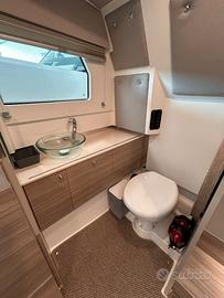 elettronica raymarine con doppio chartplotter da 12?, impianto audio fusion, elica di prua, shore power 220V, calpestio in soft deck, verricello elettrico salpa ancora, aria condizionata 220V, frigorifero pozzetto al lato del mobile cucina, tendalino con pali in carbonio a poppa, prendisole prua, divani trasformabili in prendisole a poppa, cappottine di chiusura totali, murate a poppa abbattibili elettriche ecc...