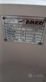 Scafetto metri 5, equipaggiato con doppia batteria, serbatoio grande,rollball con tenda, serbatoio per acqua, doccetta, pompa di sentina e scaletta. Motore Yamaha 40/60 con strumentazione di bordo, parabordi e cuscineria in buone condizioni.