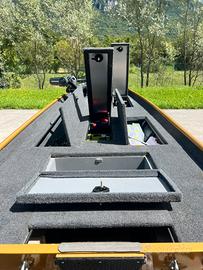 Piccola bass boat molto comoda e compatta da usare in laghi di medie dimensioni. Si pesca facilmente e comodamente in due, predisposta con nr 2 sedi per sedili stand up (in dotazione) facilmente rimovibili durante il trasporto.