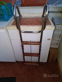 vendo scaletta pieghevole. per barca in acciaio inox 3 gradini in mogano e maniglione rinforzato in buone condizioni