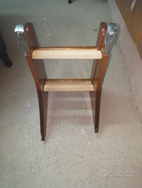 In mogano da 4 gradini,degli anni 80,perfetta,usata poco,con ganci,gommini,4 gradini antiscivolo. Altezza 113 cm.,chiusa 60 cm,larga 34 cm.